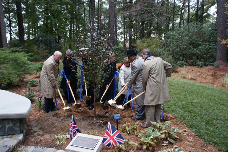 An Afternoon Tea Celebrating the Queen’s Jubilee by Norfolk Sister Cities | Nov 5, 2012 | NSCA Norfolk Sister City Association and Norfolk England Committee was proud to have celebrated An Afternoon English Tea to celebrate Diamond Jubilee Tree Planting in honor of Queen Elizabeth II with Chief of Staff Admiral Tony Johstone-Burt (UK) Norfolk Mayor Paul D. Fraim Norfolk Botanical Garden ~ Reflection Garden
