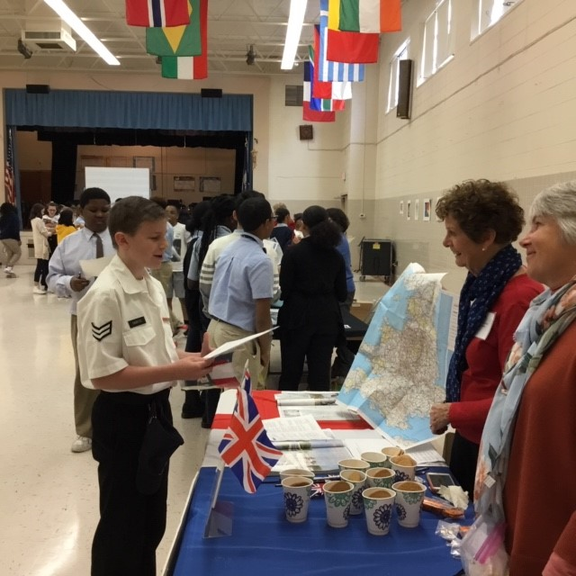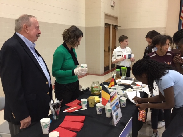 held for the benefit of students at the Academy of International Studies at Rosemont. Eight of our ten sister city committees participated. Over two hundred middle school students engaged in an international trivia challenge complimented by the sights and tastes of many different lands!