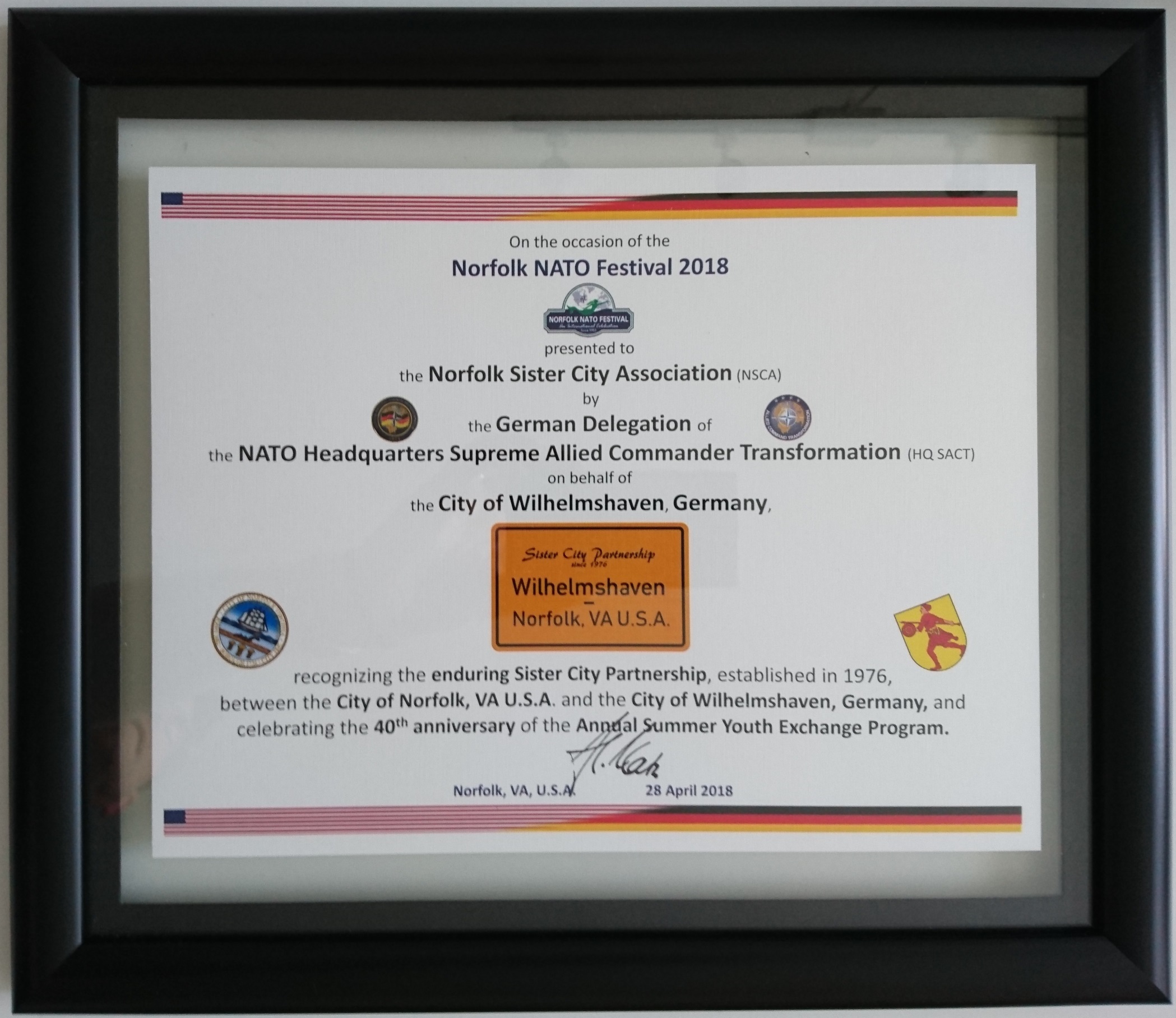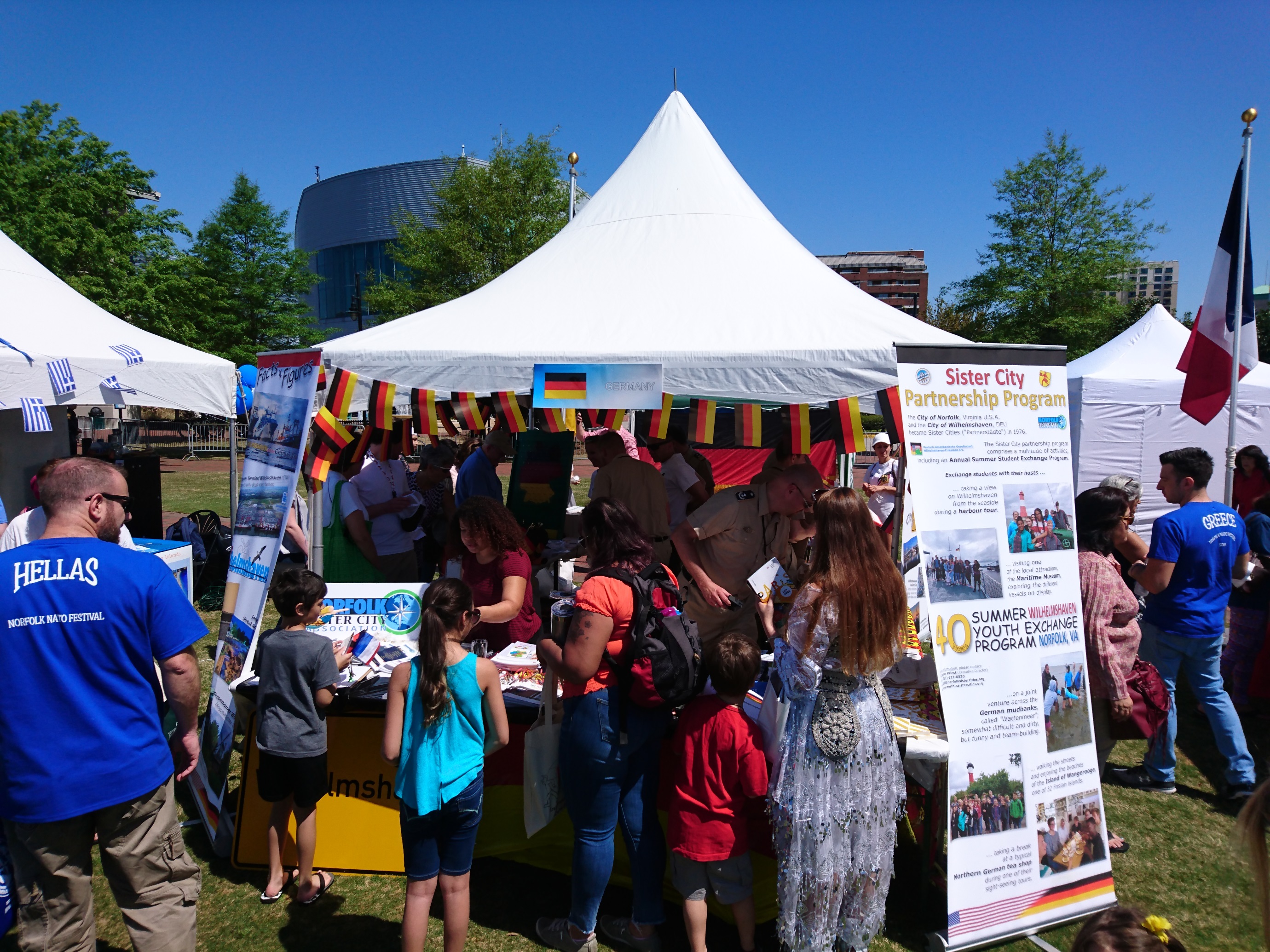 Our 2018 Outbound Wilhelmshaven Exchange students helped the German NATO contingent man their booth at the annual Norfolk NATO Festival held at Town Point Park on April 28.